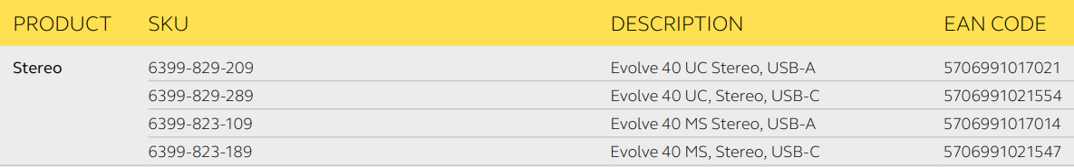 Jabra EVOLVE 40 corded Duo Headset (Stereo) USB (Type A & Type C ) & 3.5mm jack connectivity (UC or MS Teams version)