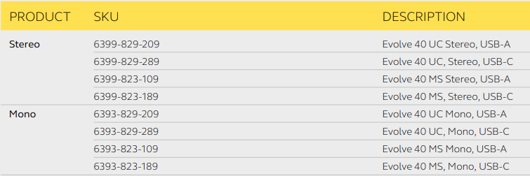 Whats in the box: Pouch, Evolve 40 Headset, Warning leaflet, Warranty leaflet, Quick Start Guide, Foam inlay (only available for duo), Layer card, Poly bag
