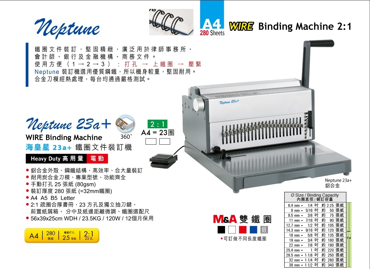 Neptune 23a- 2:1 電動重型鐵圈釘裝機(A4), 28張 - 可抽刀中國製造